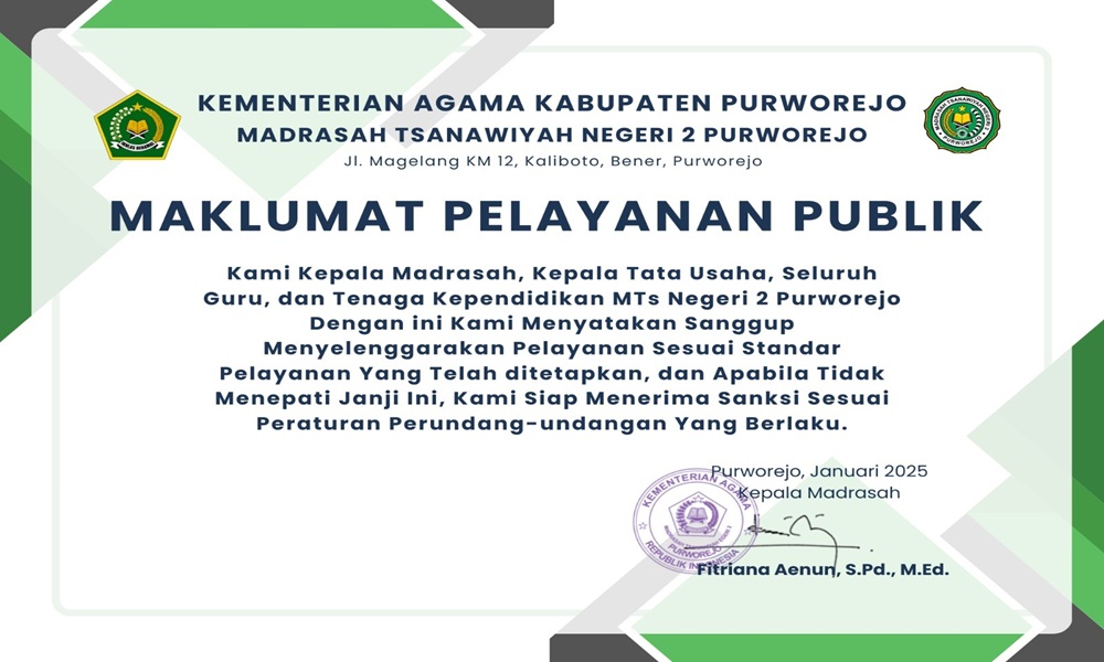 Purworejo, 25 November 2025 — MTsN 2 Purworejo menggelar upacara peringatan Hari Guru Nasional dengan khidmat dan penuh kehangatan. Pada tahun ini, perayaan berlangsung meriah dengan rangkaian kegiatan kreatif yang melibatkan seluruh siswa dan guru sebagai bentuk penghormatan dan rasa terima kasih terhadap peran guru dalam pendidikan. Acara diawali dengan upacara resmi yang dipimpin oleh Drs Iswahyudi mewakili Kepala MTsN 2 Purworejo, Fitriana Aenun, M.Ed., yang dalam amanatnya menekankan pentingnya keteladanan, dedikasi, dan kolaborasi antara pendidik dan peserta didik guna mewujudkan madrasah yang unggul dan berkarakter. Beliau juga menyampaikan apresiasi atas kerja keras seluruh Read more…